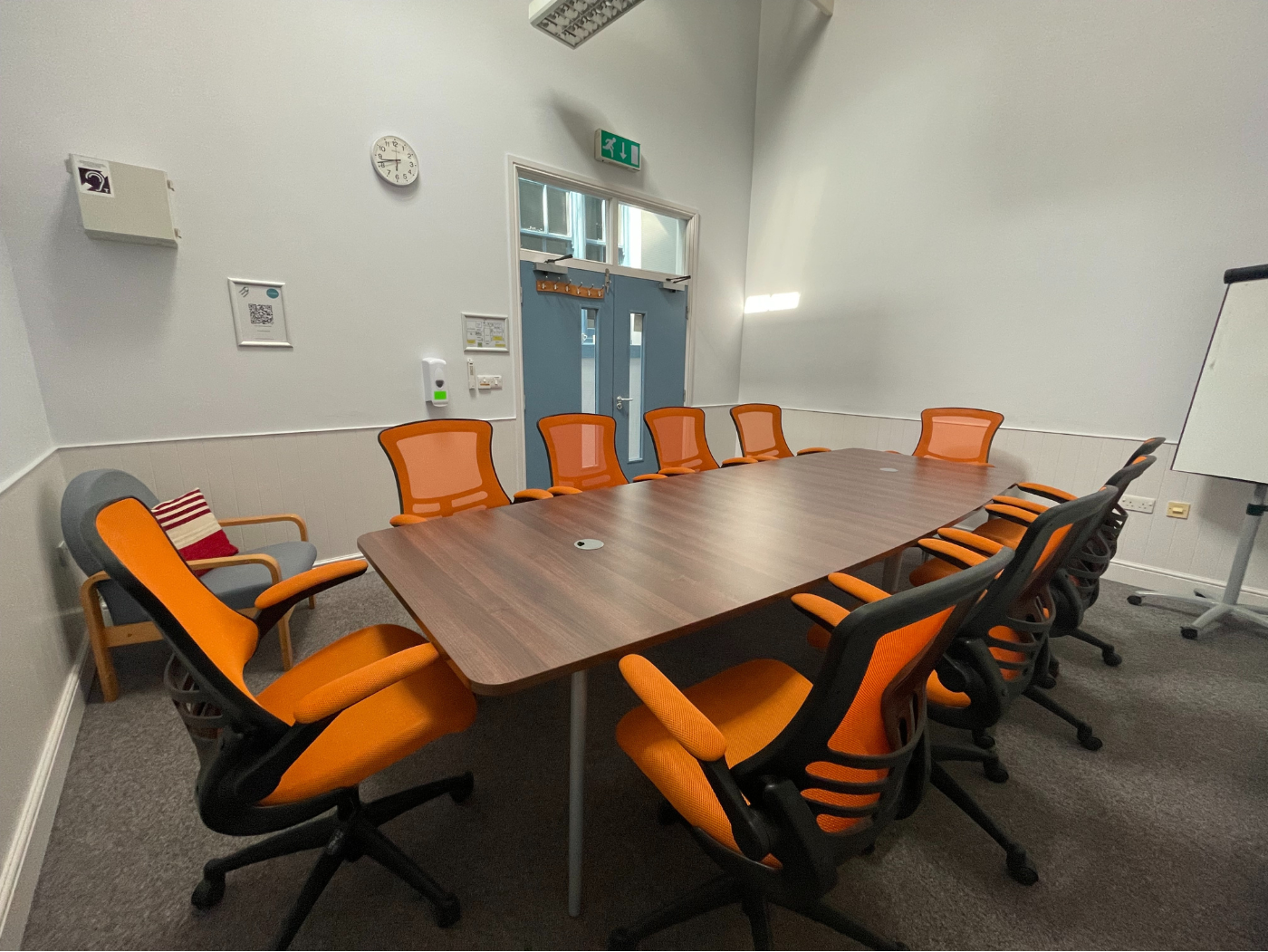 - The room has a blu-tak wall for sticking posters and training materials to.